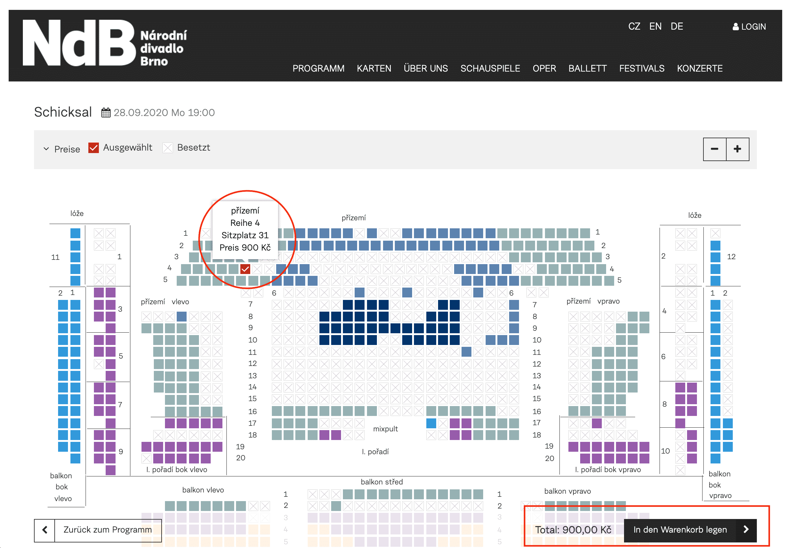 The main organiser of the Janáček Brno Festival is the National Theatre Brno, so the tickets are sold through the theatre in cooperation with the Colosseum Tickets online booking system. After clicking the “Buy Ticket” button, you will be redirected to the National Theatre Brno website (opens in a new window), where you will be shown the available seats in the auditorium, which you will be able to book. Select suitable seats and add them “to the basket” (buy tickets for at least 2 other shows at the same time to get the discount).