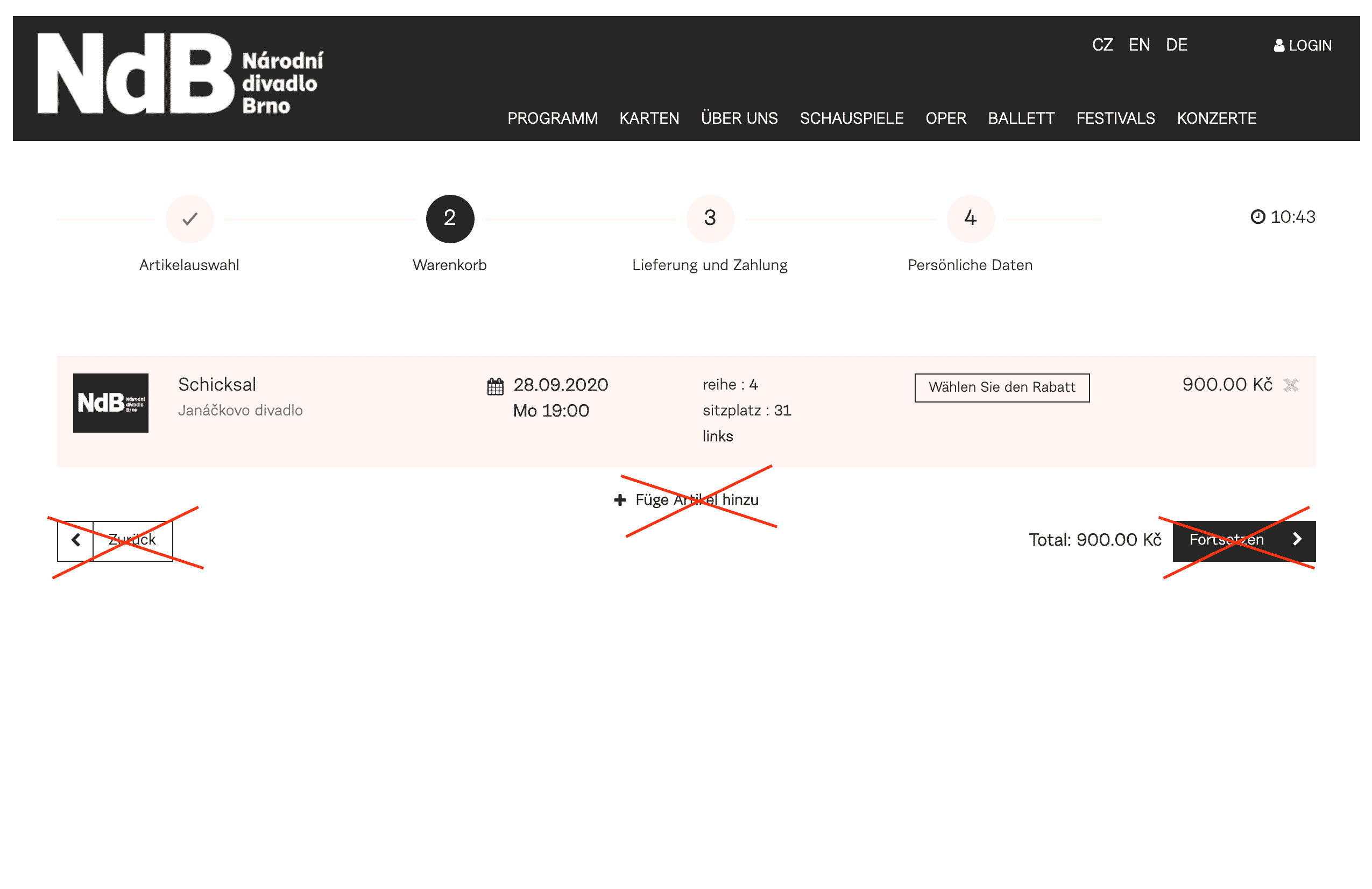 Please note! We do not recommend clicking on “Back to programme” or “Add more items” as you will be taken to the programme of all current performances of the National Theatre Brno, not the Janáček Brno 2022 festival.